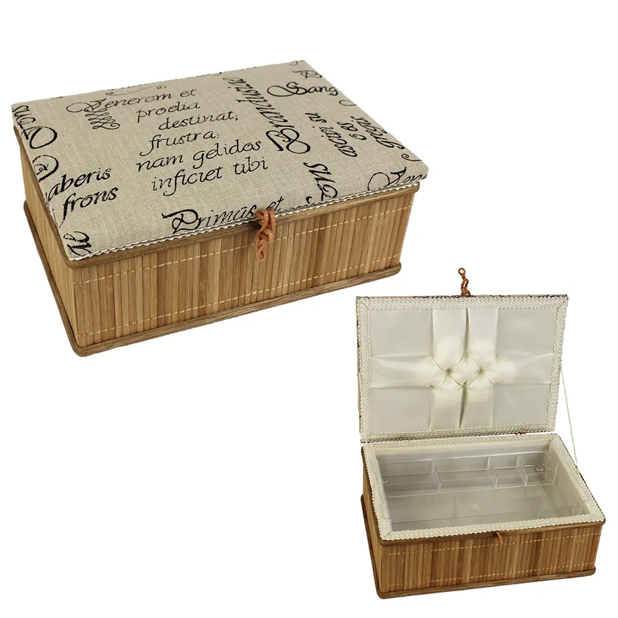 Nähkästchen mit abnehmbarem Fach aus transparentem Kunststoff Maße: 27 x 19 cm, Höhe 12 cm Material: Bambus