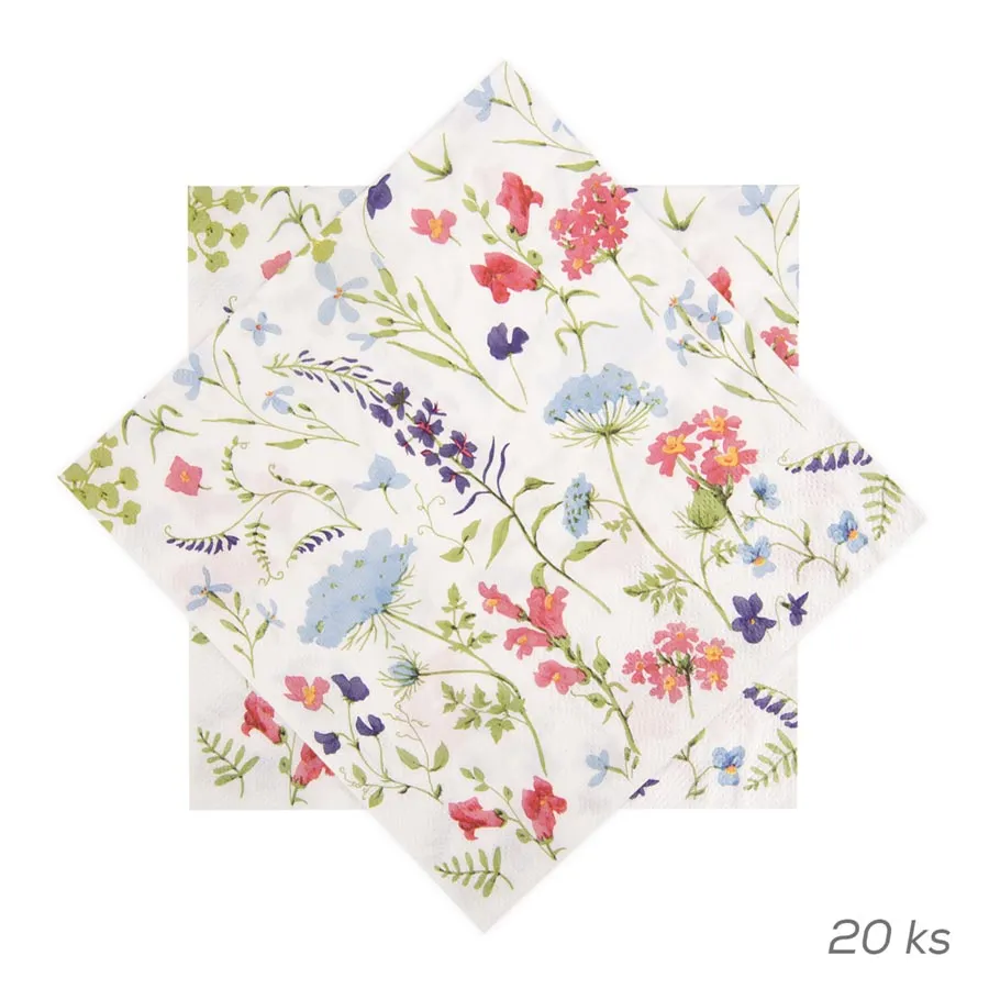 Serviette mit aufgedrucktem Frühlingsdekor.
