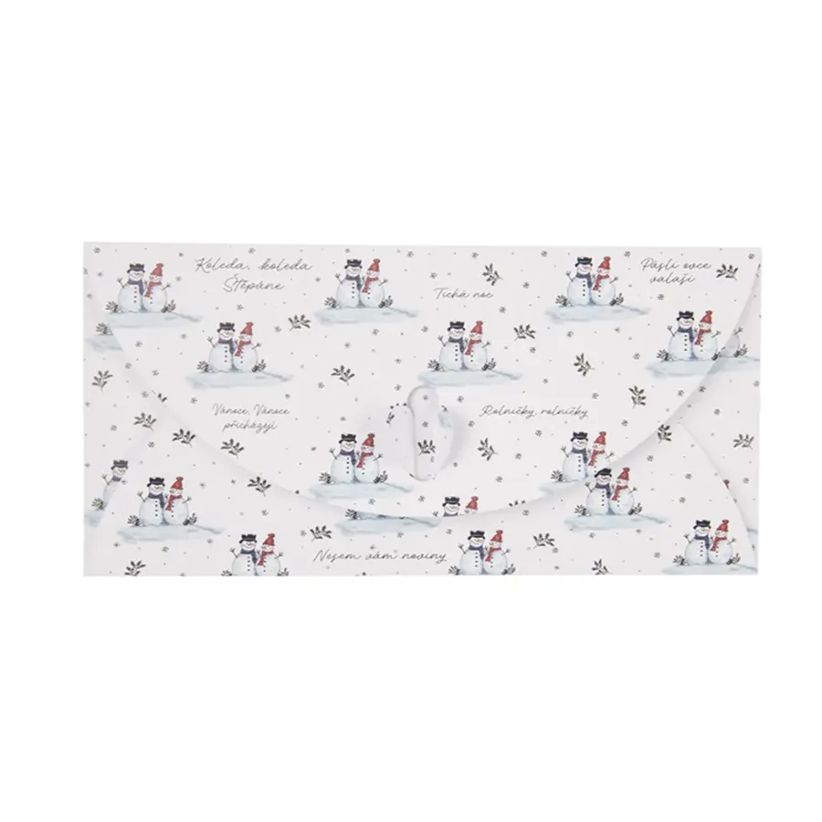 Ein Papierumschlag mit Wintermotiv ist praktisch, wenn Sie jemandem ein Geschenk machen möchten, zum Beispiel Theaterkarten, einen Geschenkgutschein oder Geld. Er lässt sich sehr leicht öffnen und wieder schließen. Material: Papier.