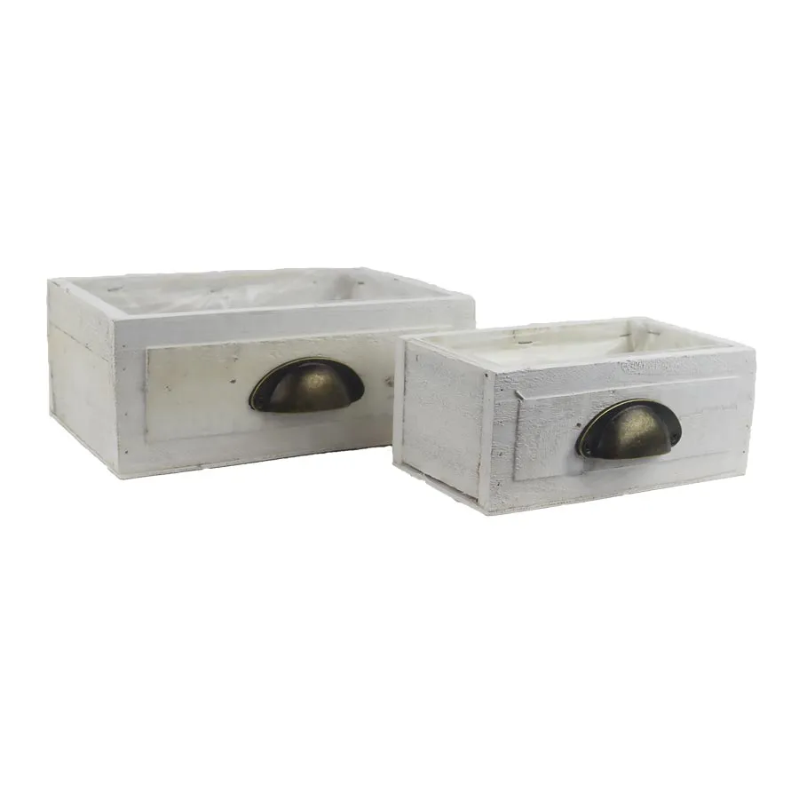 Set dekorativer Verpackungen zum Bepflanzen mit Kunststoff. Das Set enthält 2 Koffer in zwei Größen. Das kleine Paket hat die Maße: 20 x 11 cm, Höhe 8,5 cm. Die große Verpackung hat die Maße: 25 x 16,5 cm, Höhe 10 cm.
