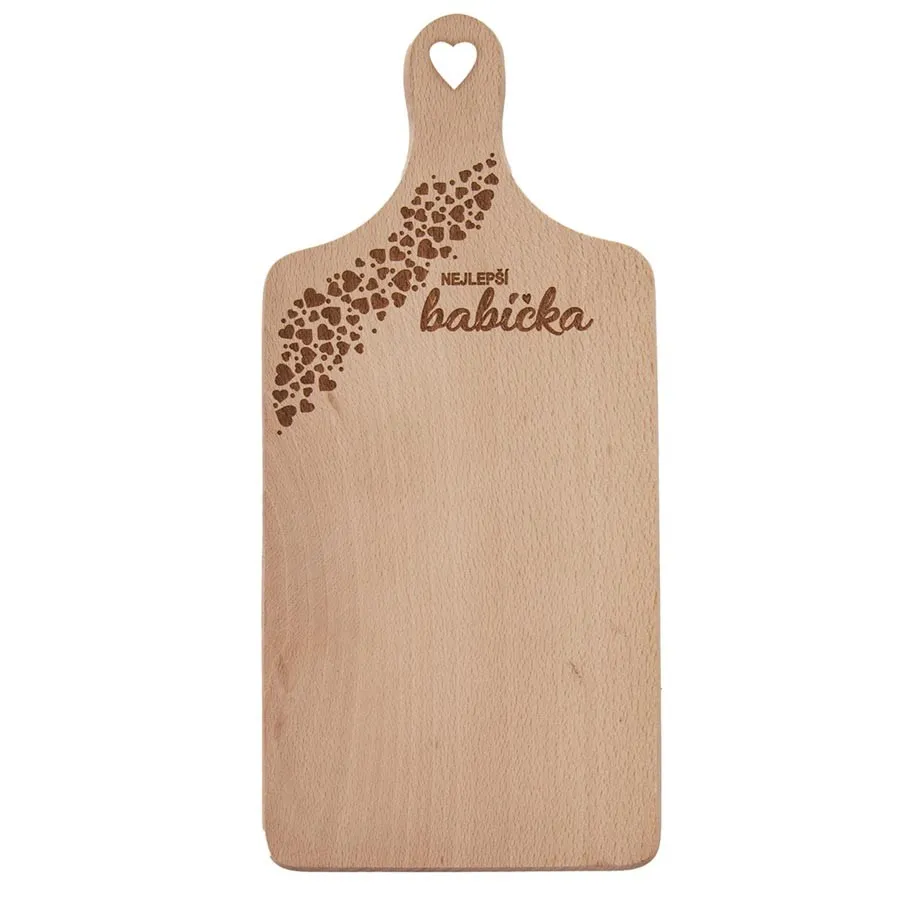 Schneidebrett mit gebranntem Dekor – die beste Großmutter.
