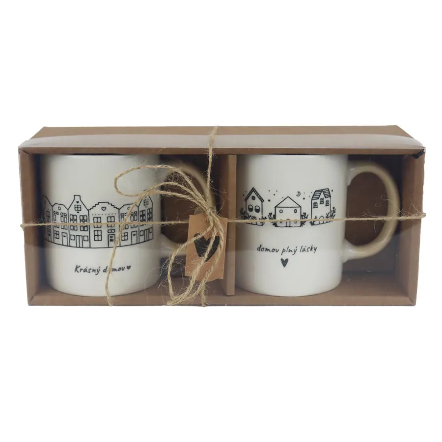Set Porzellantassen in einer Box. Das Set beinhaltet 2 Tassen. Der Becher hat ein Volumen von 350 ml.