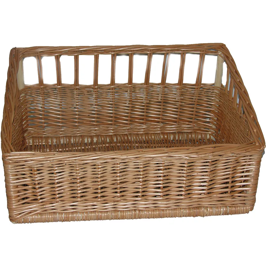 Weidenkorb für verschiedene Waren. Höhe des hinteren Teils des Korbs 30 cm, Höhe des vorderen Teils des Korbs 20 cm.