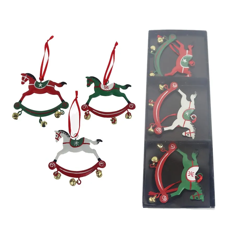 Set dekorativer Pferde zum Aufhängen. Das Set enthält 3 Pferde. Maße: Farbe: Kombination von Rot, Weiß, Grün. Material: Metall.