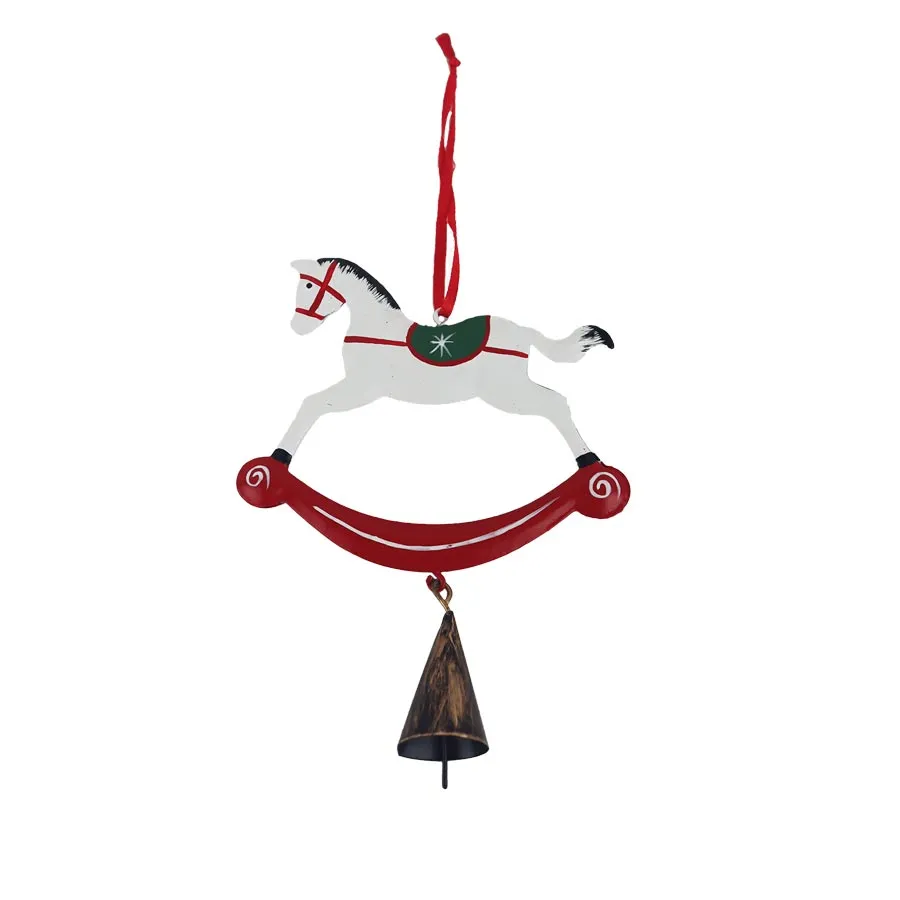 Dekoratives Pferd zum Aufhängen. Maße: Farbe: Kombination weiß, rot. Material: Metall.