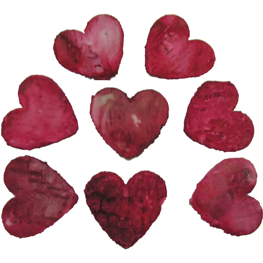 Rotes Herz. Maße: Durchmesser 4,5 cm. Material: Baumrinde. Set: 60 Stück.