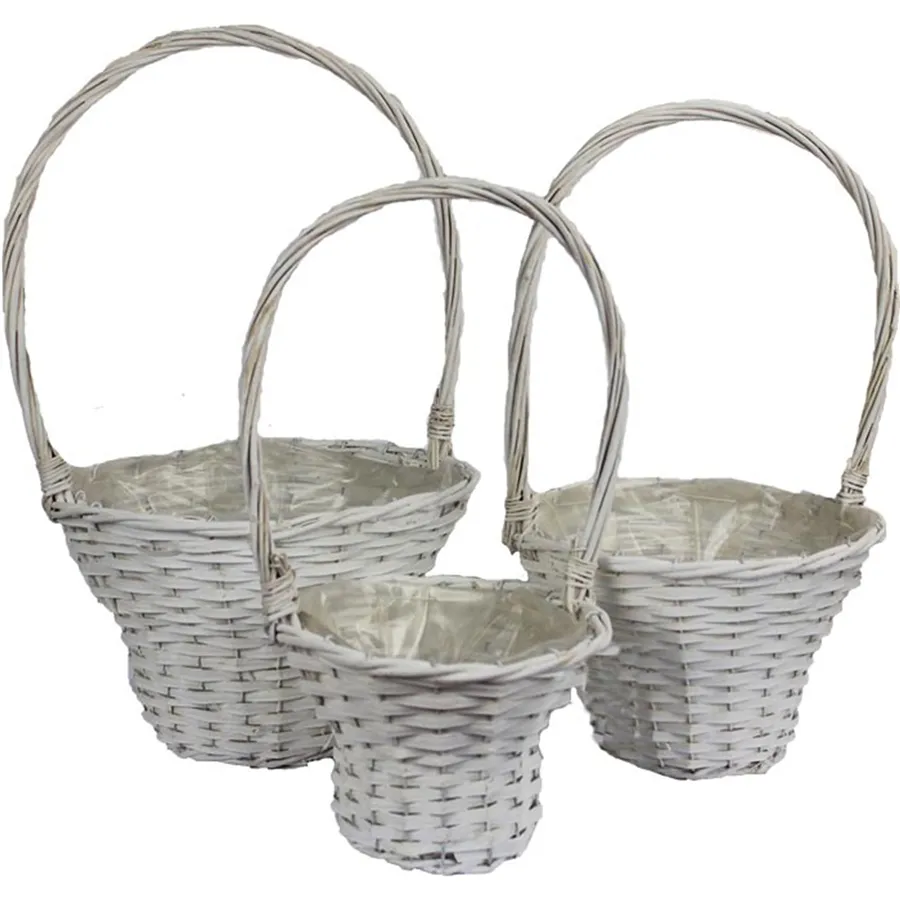 Set von 3 Stück. Größen der Körbe: Klein: Durchmesser 20 cm. Die Höhe mit Griff ist 43 cm (ohne 15 cm). Mittel: Durchmesser 25 cm. Die Höhe mit Griff ist 46 cm (ohne 17 cm). Groß: Durchmesser 30 cm. Die Höhe mit Griff beträgt 50 cm (ohne 19 cm). Abmessungen: Bitte beachten Sie alle angegebenen Maße sind ungefähr, die Körbe sind alle handgefertigt und daher einzigartig. Die angegebenen Maße sind ein Hinweis auf die ungefähre Größe, auch die Farbe können aber leicht variieren. Varianz der Größe + -2 cm.