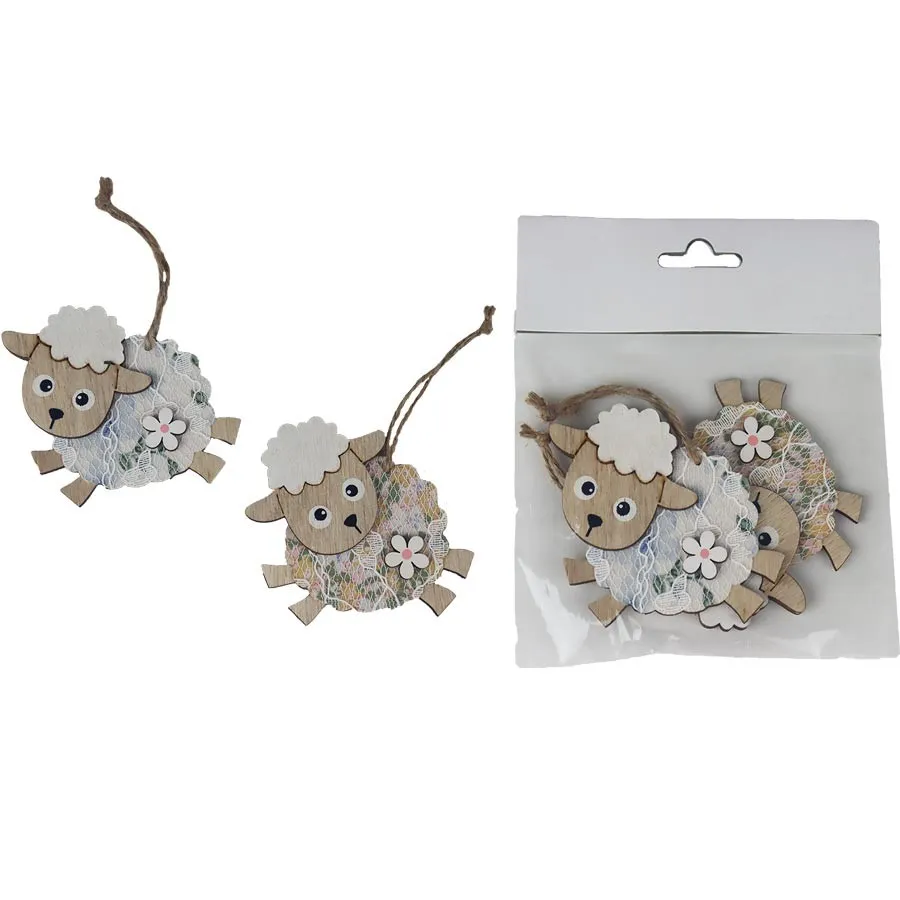 Set Deko-Schafe zum Aufhängen. Das Set enthält 2 Dekorationen. Maße: 9 x 0,4 cm, Höhe 7 cm. Farbe: Kombination aus Natur mit Weiß, Grün, Blau. Holzwerkstoff, Textil.