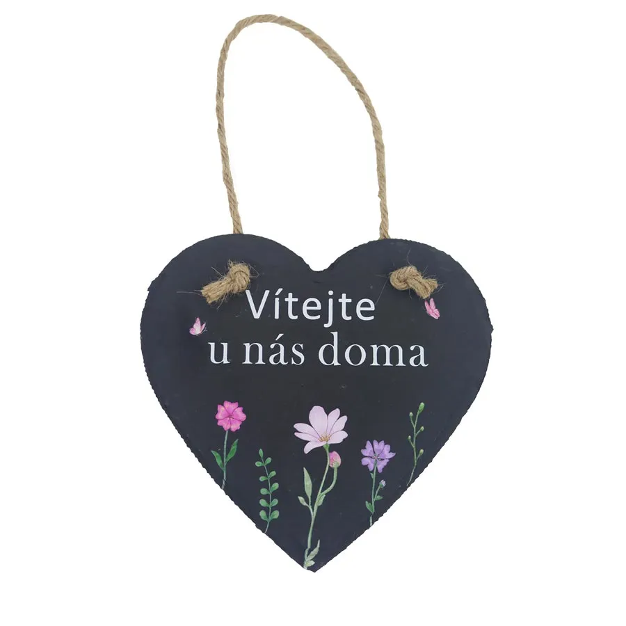 Dekorativer Schiefertisch zum Aufhängen eines Herzens.