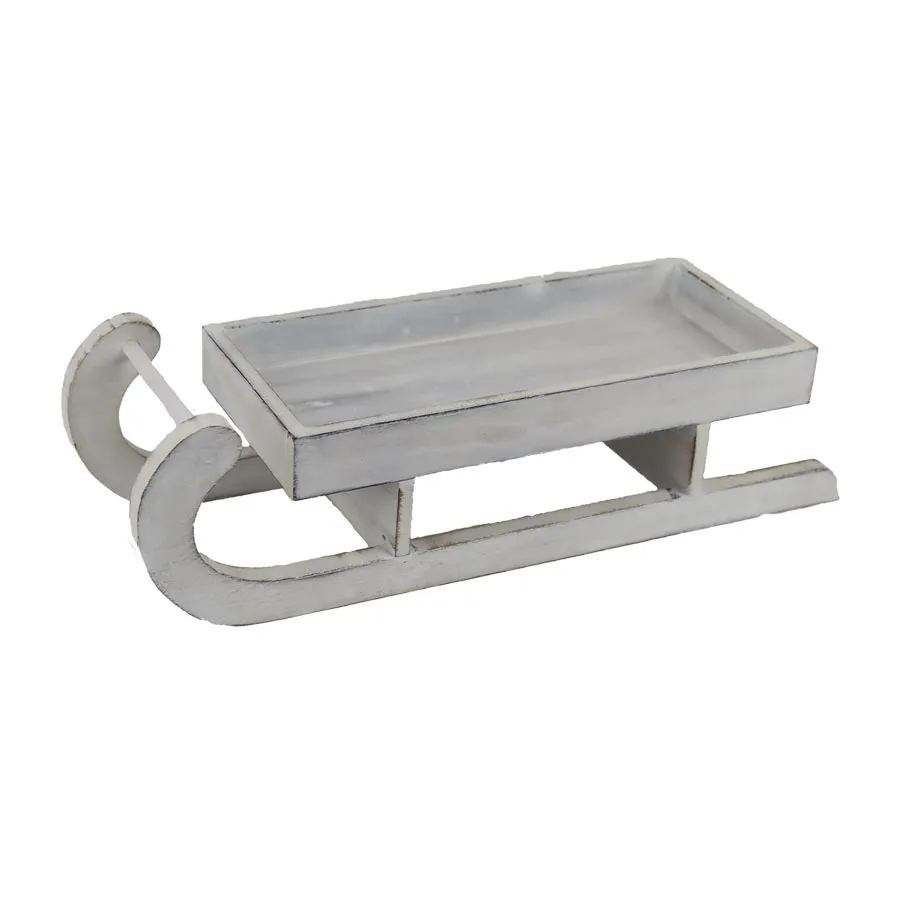 Dekorativer Schlitten. Abmessungen: 30 × 10 cm, Höhe 8,5 cm. Weiße Farbe. Holzbasismaterial.