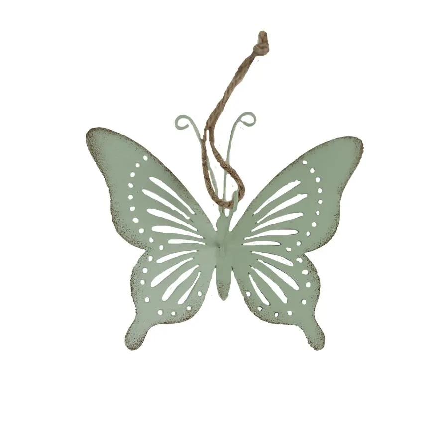Dekorativer Schmetterling zum Aufhängen. Abmessungen: 11 x 9 cm, Dicke 4 cm. Farbe grün. Material: Metall.