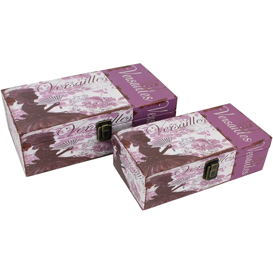 Set - zwei original Versailles Schmuckschatullen. Maße: Klein - 24 x 12 cm, Höhe 7 cm. Groß - 29 x 15 cm, Höhe 9 cm. Material: MDF.