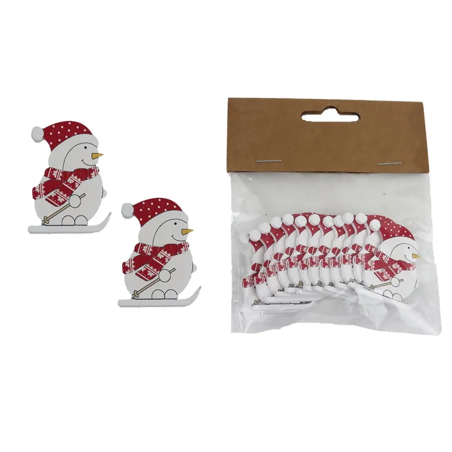 Set dekorativer Schneemänner. Das Set enthält 12 Schneemänner. Maße: Farbe: Kombination weiß, rot. Holzbasismaterial.