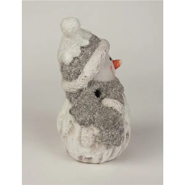 Dekorativer Schneemann mit LED-Beleuchtung. Anzahl der LEDs: 1 Lichtfarbe: Warmweiß. Stromversorgung: 2x 1,5V LR44 DC. Schutzklasse: IP20 (Innenbereich)