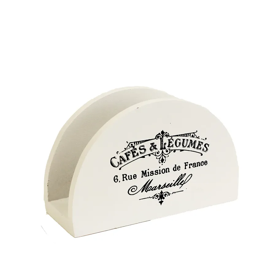 Serviettenständer. Maße: Breite 12 cm, Dicke 4,5 cm, Höhe 7,5 cm. Farbe: Weiß. Material: MDF.