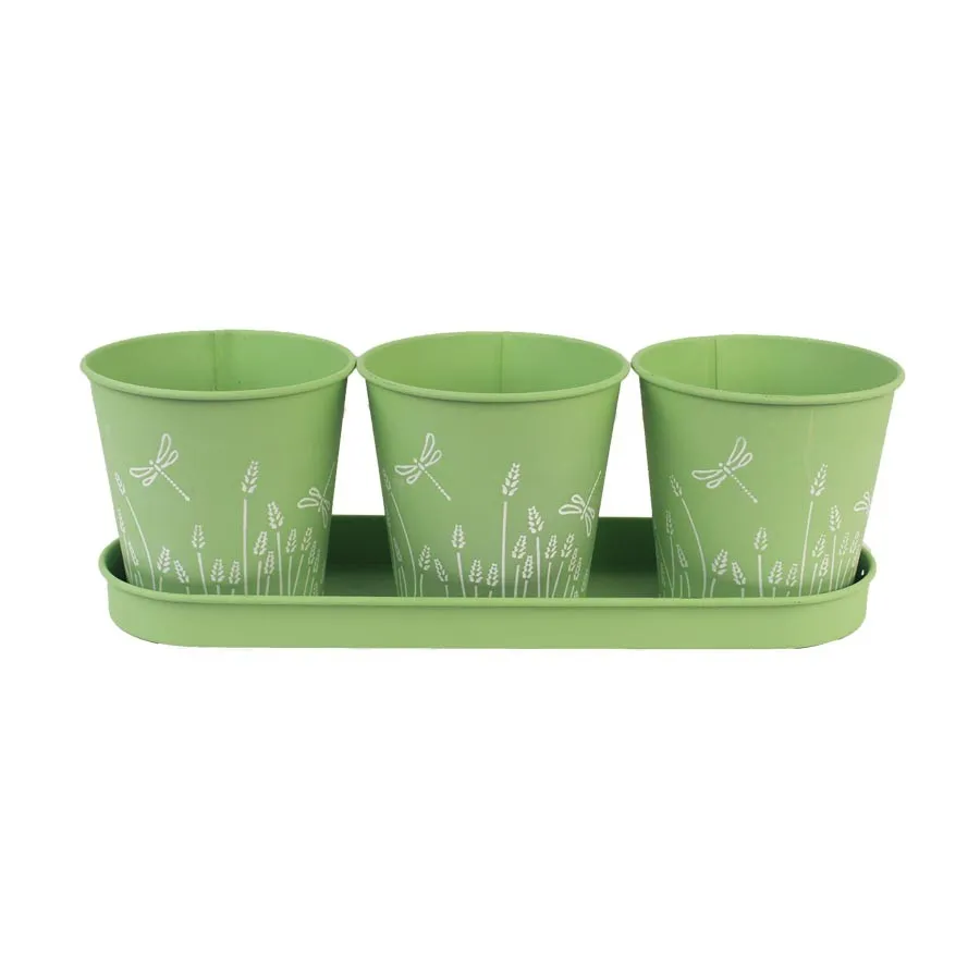 Set aus 3 Blumentöpfen mit Tablett K2585-15