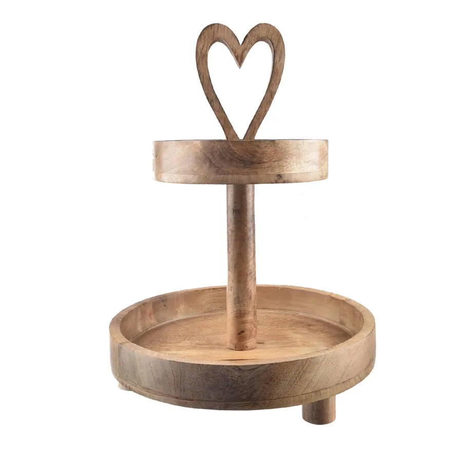 Ständer mit Herz 2 Etagen aus Mangoholz O0512