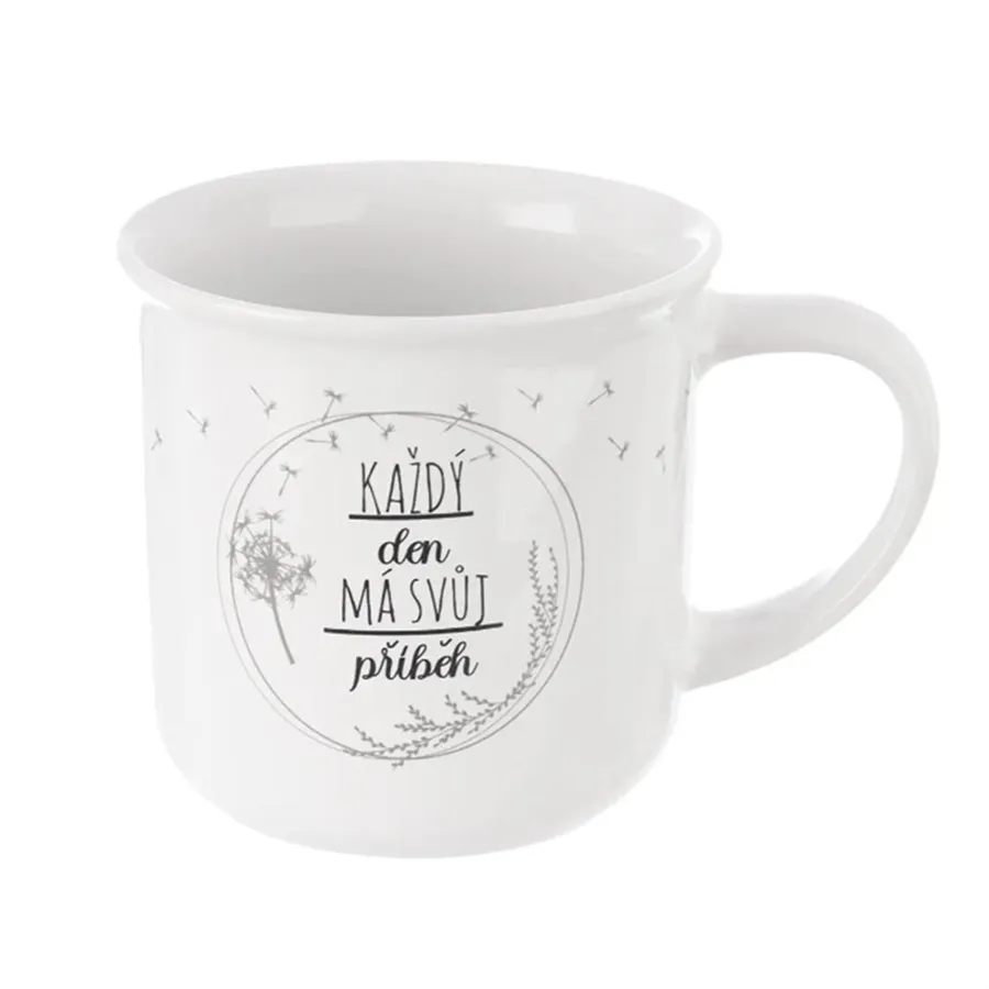 Becher mit Henkel und Dekor ist ein schönes Geschenk.