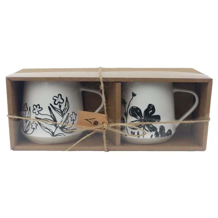 Becher-Set mit Blumen Mix. Das Set enthält 2 Becher. Der Becher hat ein Volumen von 350 ml. Verpackungsgröße: 28x10,2x9,5