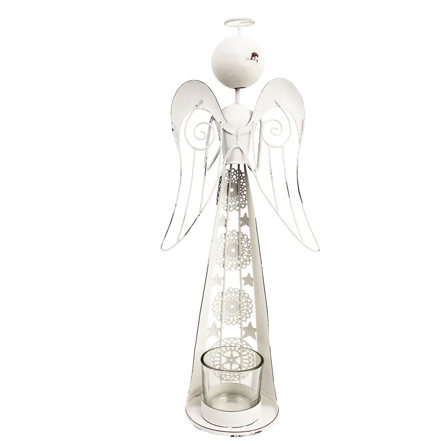 Wunderschöner Teelichtengel aus Metall mit weißer Patina.