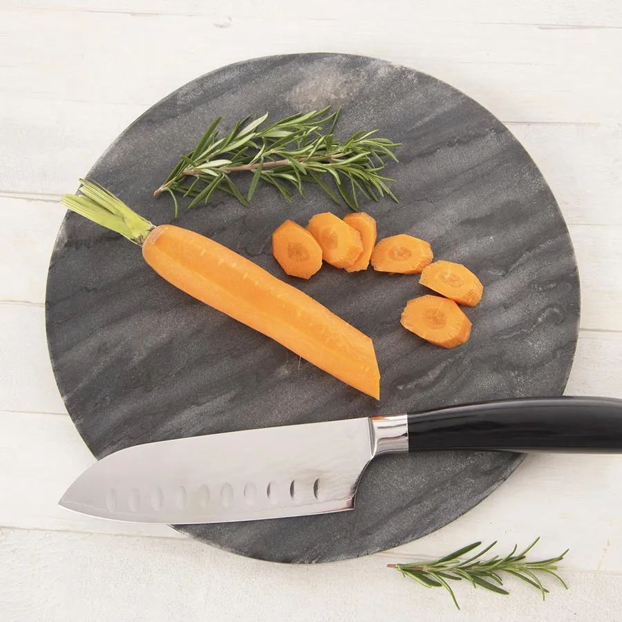 Die Marmormatte bietet vielseitige Einsatzmöglichkeiten. Als praktische Unterlage für Gewürze und Gewürze schmückt es Ihren Tisch. Sie können es auch als Unterlage unter einem heißen Topf (max. 70 °C) verwenden. Er dient zum Schneiden und Sie können darauf Käse, Wurst und andere Leckereien mit Wein oder Bier servieren.