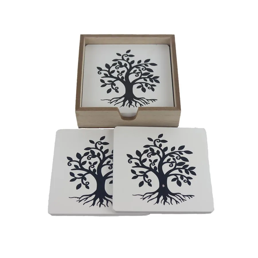Ein Satz Untersetzer aus Holz. Das Set enthält 6 Untersetzer.