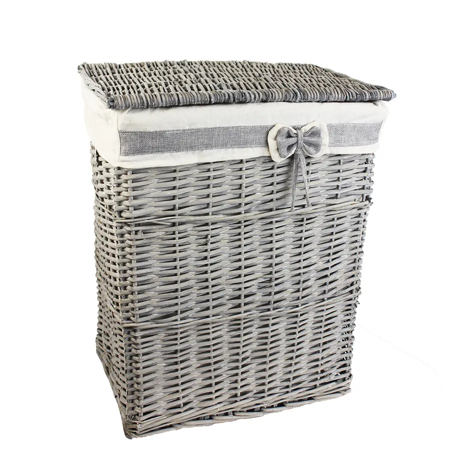 Wäschekorb grau. Maße: 45 x 35 x 57 cm. Material: Weide, Stoff. Abmessungen: Bitte beachten Sie alle angegebenen Maße sind ungefähr, die Körbe sind alle handgefertigt und daher einzigartig. Die angegebenen Maße sind ein Hinweis auf die ungefähre Größe, auch die Farbe können aber leicht variieren. Varianz der Größe + -2 cm.