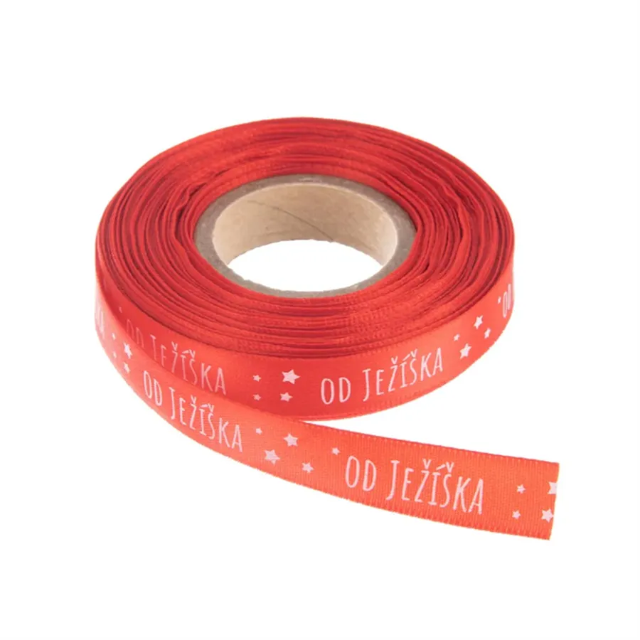 Rotes Polyesterband mit dem Aufdruck "VOM CHRISTKIND" ist ideal zum Verpacken von Weihnachtsgeschenken oder zum Verzieren von Weihnachtsdekorationen.