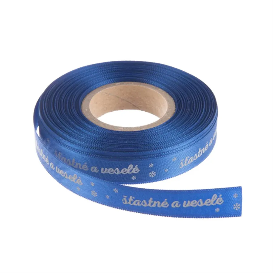 Blaues Polyesterband mit dem Aufdruck "Frohe Weihnachten" ist ideal zum Verpacken von Weihnachtsgeschenken oder zum Verzieren von Weihnachtsdekorationen.