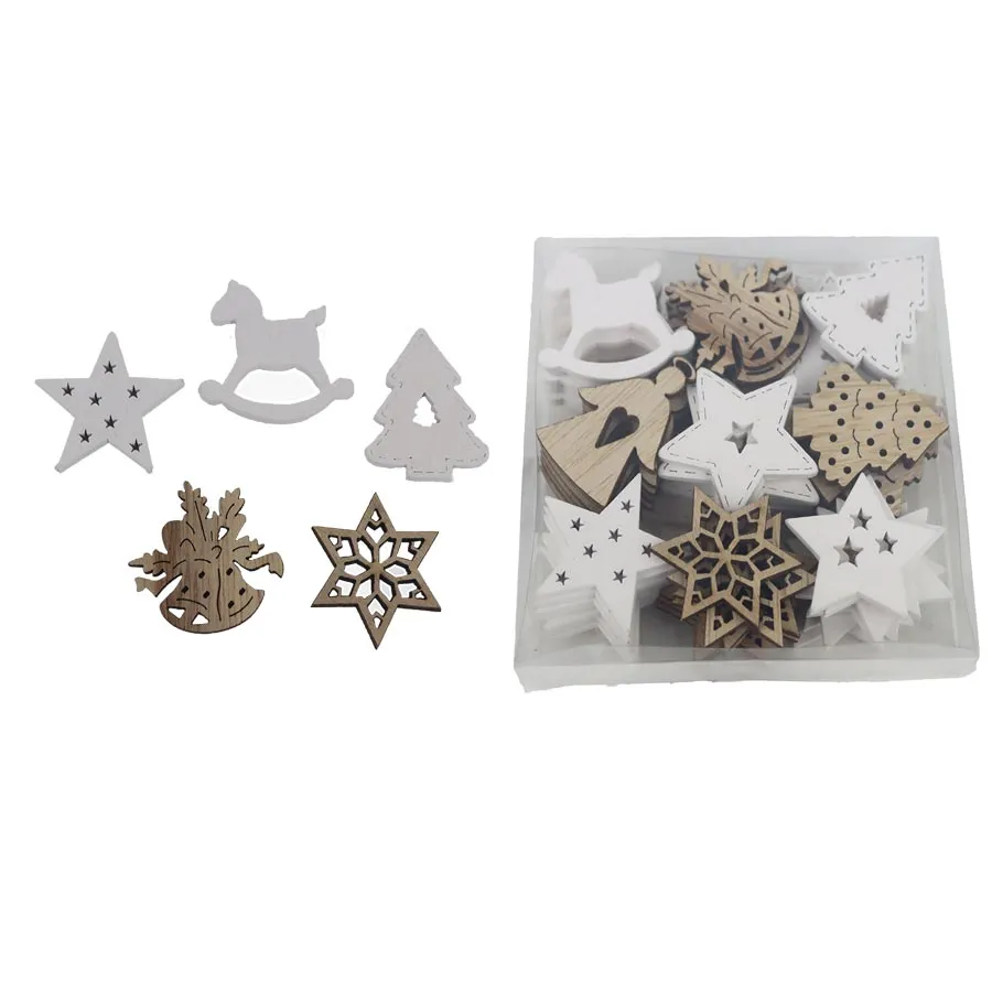 Set von Dekorationsdekorationsmix. Das Set enthält 72 Dekorationen. Maße: Farbe: Kombination von Natural, Weiß. Holzbasismaterial.