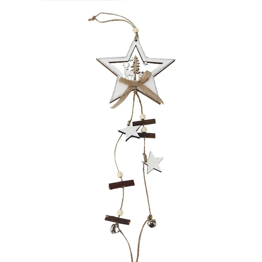 Weihnachtsdekoration zum Aufhängen eines Sterns. Der Stern hat die Maße 14,5 x 14,5 cm, Dicke 0,5 cm, Gesamtlänge der Verzierung 52 cm.
