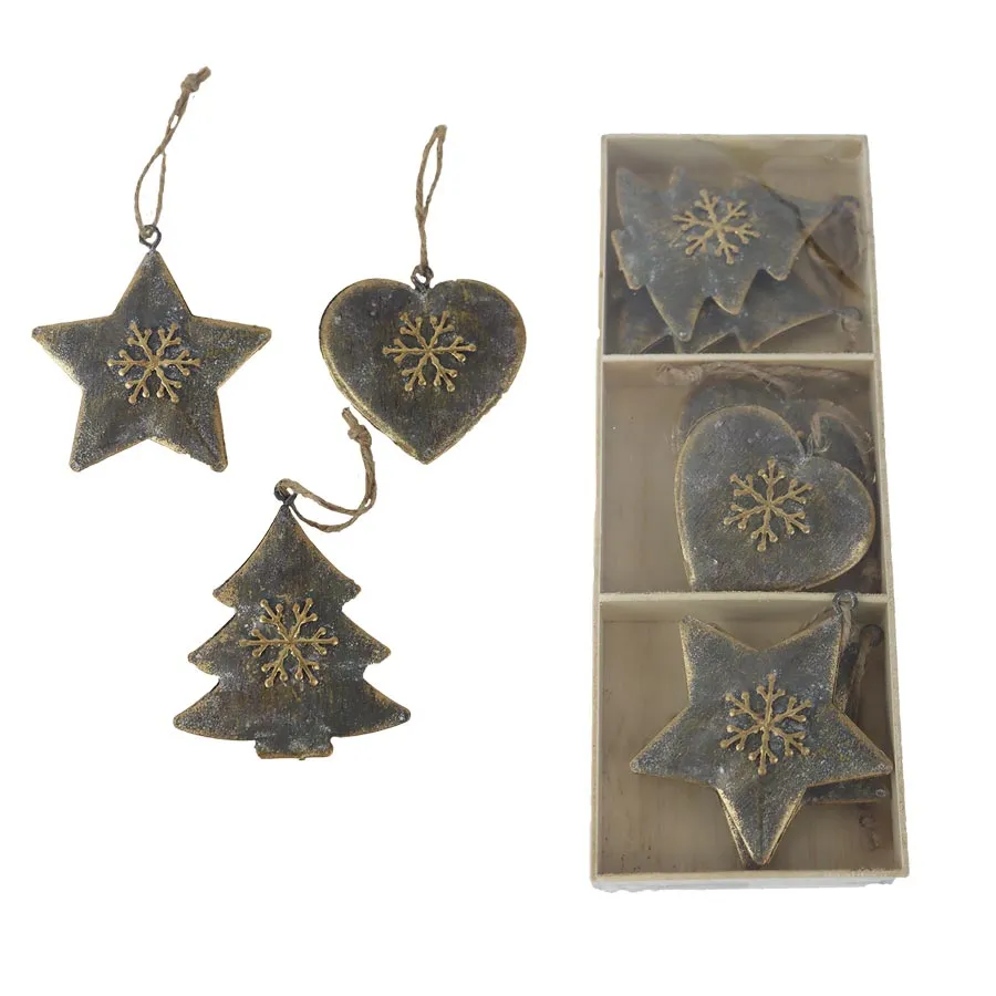 Set Weihnachtsdekoration zum Aufhängen. Das Set enthält 6 Dekorationen.