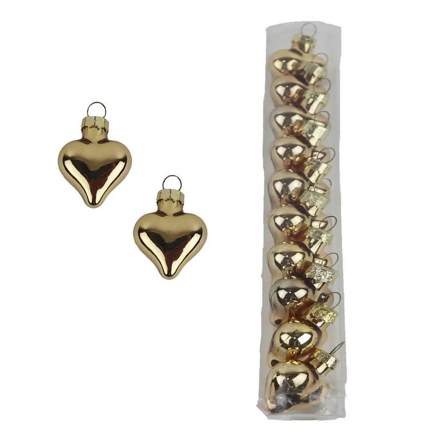 Set mit dekorativen Herzen zum Aufhängen. Abmessungen : 2,8 x 1,5 cm, Höhe 4 cm. Farbe : Gold. Material : Glas.