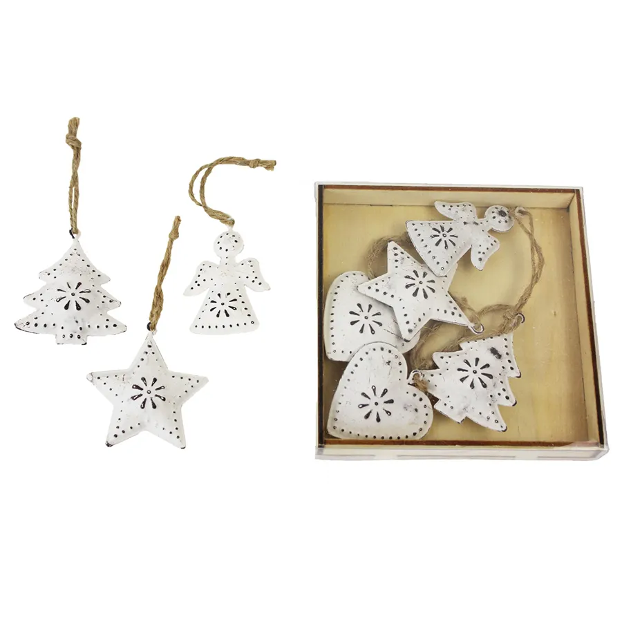 Set Weihnachtsschmuck für den Baum. Das Set enthält 8 Teile, Motiv - Engel, Herz, Baum, Stern.