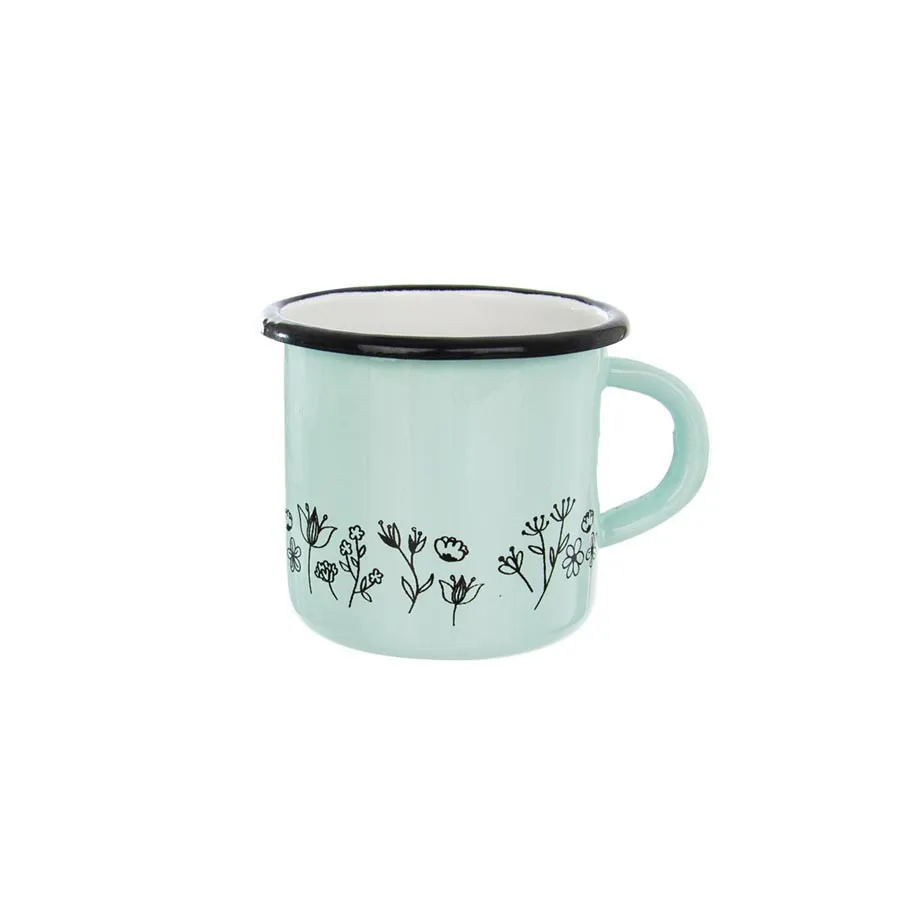 Der flache emaillierte Becher ist für alle Arten von Geräten geeignet.