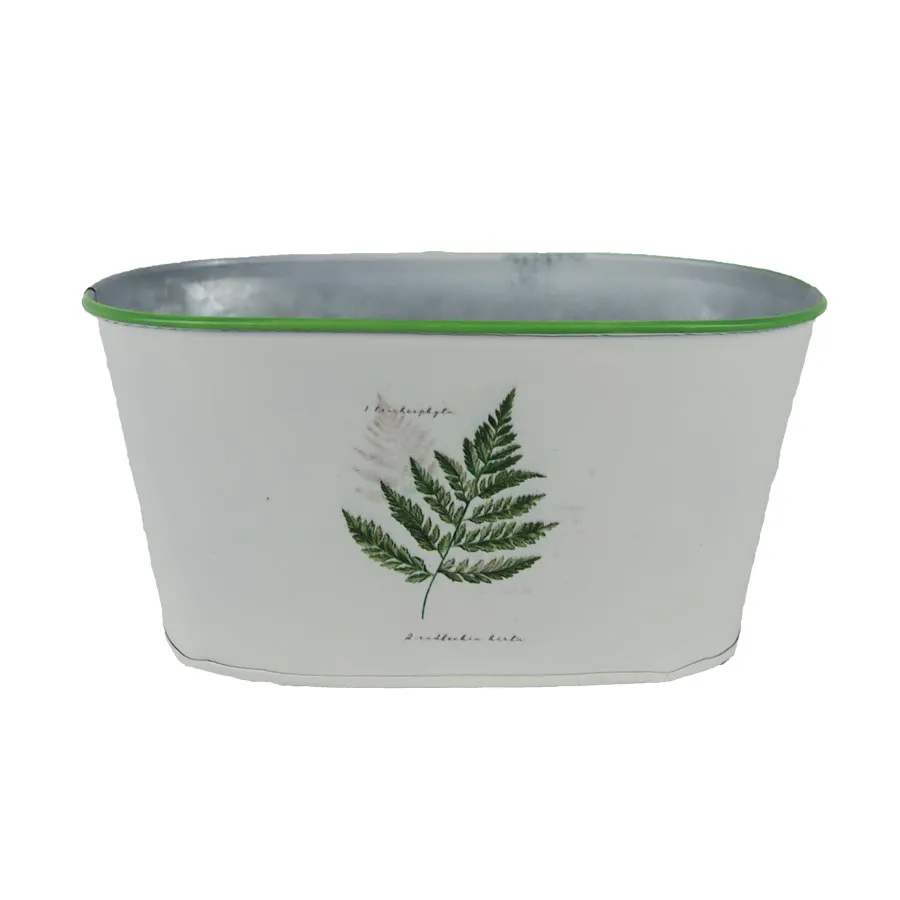 Ovaler Blumentopf aus Blech.